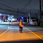 博多区内にて夜間工事に伴う交通誘導警備を実施致しました。